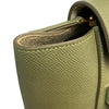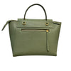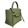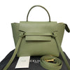 This is an authentic Celine Micro Belt Grained Calfskin in Green. This chic tote is crafted of richly textured calfskin leather with a structured and spacious silhouette. The bag features a leather strap top handle, an optional shoulder strap, and a facing flap secured by a strap and button insert. This opens to a suede interior.