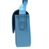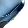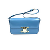 This is an authentic Celine Shiny Calfskin Triomphe Shoulder Bag in Light Blue. This chic shoulder bag is crafted of smooth calfskin leather in light blue. The bag features an adjustable leather shoulder strap with gold hardware, and a matching gold press lock on the crossover flap that opens to a matching leather interior with a patch pocket. A perfect blend of style and functionality.