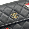 This is an authentic Chanel Coco Casino Flap With Chain Caviar Quilted in Black. This chic case is crafted of luxurious diamond quilted caviar leather. The case features a long leather threaded gold chain shoulder strap, a gold CC logo, and enamel charms. The front flap opens to a black fabric interior with card slots and a zipper compartment.