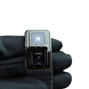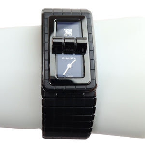 This is an authentic Chanel Code Coco Limited Edition Quartz Watch Diamond 21mm Stainless Steel in Black. The watch is made of stainless steel with a flexible grid bracelet, featuring a black dial, a diamond at 12 o'clock, silver sword...