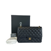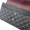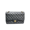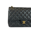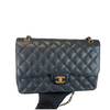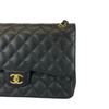 This Chanel Jumbo features a double flap enclosure to maximize space and increase security for your items. Adorned with an iconic gold-tone metal CC turn-lock closure, the Jumbo is a nod to Chanel's classic style.