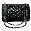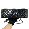 Jumbo Double Flap Black Patent Quilted Shoulder Bag SHW