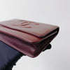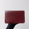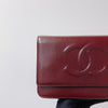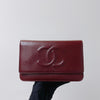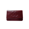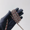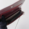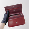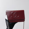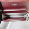 This fashionable wallet on chain is made from luxurious caviar leather in red and features a silver-toned leather-threaded chain-link shoulder strap, an embossed Chanel CC logo on the flap, and a snap closure.