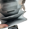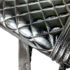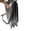 This Verticle North-South Boy Chanel bag features beautiful quilted Metallic Silver leather and ruthenium hardware. This bag can be worn either as a shoulder or a crossbody bag.