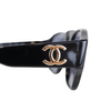 This is an authentic Chanel Vintage Acetate Sunglasses in Black. These classic sunglasses have a thick dark black acetate frame with black lenses. The temples feature a gold Chanel CC logo at the hinge.