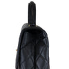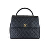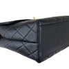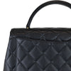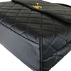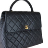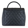 The Chanel Vintage Kelly in Black Caviar Leather with 24k GHW crafted of diamond quilted luxurious caviar leather. The bag features a sturdy leather top handle with gold links, a rear patch pocket, and a gold Chanel CC turn-lock for the facing flap. This opens to a black leather interior with zipper and patch pockets.