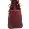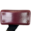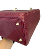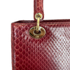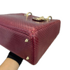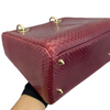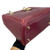This is an authentic Christian Dior Medium Lady Dior Python in Burgundy. This delightful tote is crafted of beautifully textured burgundy python with matching leather top handles. The python is complimented by gold hardware. The interior is a Dior logo jacquard textile with a zipper pocket. A perfect bag for day or night!