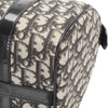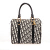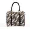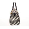 This Christian Dior Vintage Boston bag features a canvas body with leather trim, a rolled leather handles, a top zip closure, and interior slip and zip pockets.