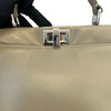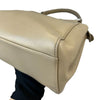 This is an authentic Fendi Mini Peekaboo Iconic Satchel Nappa in Tortora. This stylish small tote is made from soft beige lambskin leather. It includes a looped top handle, an adjustable shoulder strap, and silver Fendi logo turn locks on each side for a stylish finish. These open to a partitioned beige leather interior with pockets.