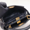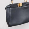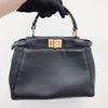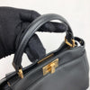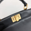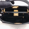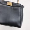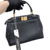 Iconic small Fendi Peekaboo bag made of black leather, finished with hand stitching and embellished with the classic twist lock on both sides. Featuring a leather lining with two compartments separated by a stiff partition, an inner zip pocket and palladium-finish hardware. The bag can be carried by hand or worn either on the shoulder or cross-body thanks to the handle and adjustable, detachable shoulder strap.