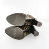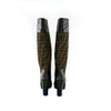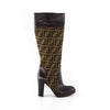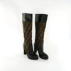 These monogram boots are a classic vintage find. The combination of canvas print and dark brown leather complement and contrast at the same time, so you can wear them with just about anything to make a statement! Stand sturdy and tall on thick 4" heels and 1" platforms. These boots will just about reach your knees, measuring at 18" from the ground to the opening. Best of all: They have never been worn!