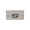 This is an authentic Fendi Vintage Zucca Monogram Continental Wallet. Crafted with iconic monogram design, this wallet brings a touch of vintage with modern style. Its interior boasts ample room for cards, cash, and essentials, keeping you organized on the go. The durable construction ensures lasting quality, while the snap closure keeps your items secure.