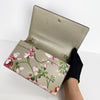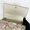 The Gucci Blooms Wallet on Chain is a stunning and unique addition to any collection. As usual, Gucci packs a lot of style in a small space! The Interior has one zipped pocket, convenient card slots, and one front slip pocket.