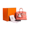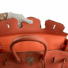 Armed with its classic lock and clasps, this iconic ‘It’ bag is both functional and chic. Extremely coveted in this rare Crevette salmon pink, this Hermes Birkin 35 Crevette in Clemence Leather with PHW is the quintessential bag for modern urbanites.