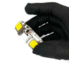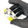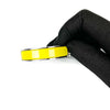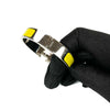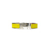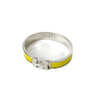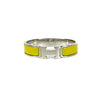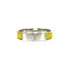 The Hermes Clic H bracelet is made out of mustard yellow enamel with brushed palladium plated hardware. This bracelet retails for $840.