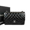This Chanel Jumbo Classic Double Flap bag is made from fine diamond-quilted glossy patent leather. It has a structured silhouette, a silver chain leather-threaded shoulder strap, and a facing half flap with a CC turn-lock closure in silver-tone. Take your style to the next level with this gorgeous must-have and eye-catching flap bag – from undoubtedly the most iconic handbags in the fashion world, totally worth the splurge as it has become a symbol of class and luxury.