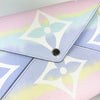The Kirigami Pochette comes in a special edition LV Escale print. The envelope-style Pochette in Monogram canvas is printed with a tie-dye effect in summer shades making this a perfect pouch for the season. This pastel-colored pouch is the largest one in the bunch and can hold your tablet. Who says bringing a tablet around is not fashionable? Definitely not Louis Vuitton!