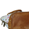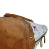 This Louis Vuitton watercolour Alma is crafted of Multicolore monogram canvas. It features vachetta leather top rolled detailed with brass hardware. The double zipper opens to a  red microfiber interior with patch pockets. This is a perfect everyday tote.