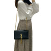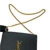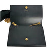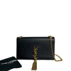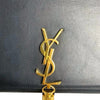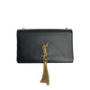 This Medium Monogram Kate Tassel from Saint Laurent is a stunning piece made from calfskin leather in black. It has a beautiful gold-toned chain link crossbody shoulder strap and a flap with a signature YSL logo and hanging tassel. The interior is made of black suede lining with a patch pocket.