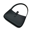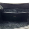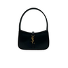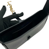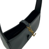 This is an authentic Saint Laurent Smooth Calfskin Mini Hobo in Black. This handbag is crafted from smooth black calfskin leather. It showcases a gracefully curved leather strap and a prominent gold YSL monogram cross strap. The bag top open a black suede leather interior adorned with a convenient patch pocket.