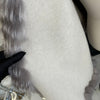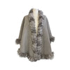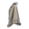 This grey cape wrap cross with a soft fox fur trim offers warmth and style, making it a versatile accessory to elevate your outfit for any occasion.