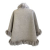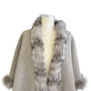 Women's Shawl Cape Wrap Cross Fox Fur Cashmere Wool Grey